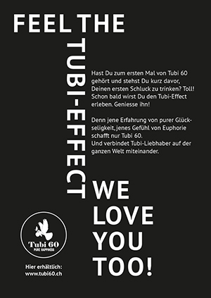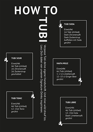 Entwicklung verschiedenster Werbemittel für «TUBI», einen Ingwerschnaps aus Israel, der neu in der Innerschwyz vertrieben wird, seit 2018